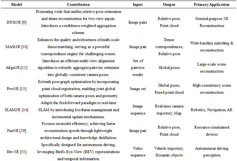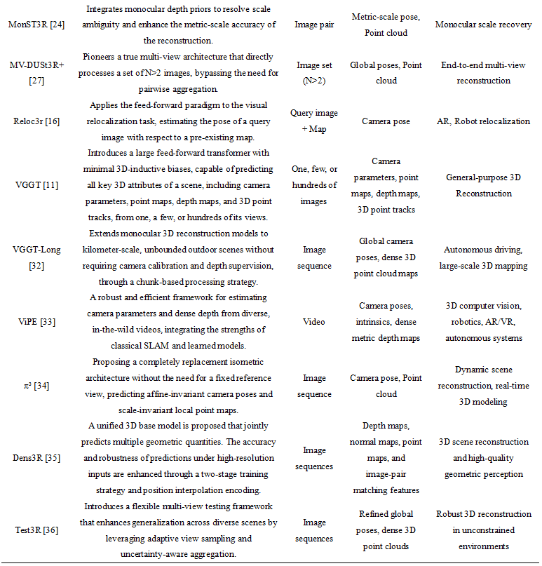 Table 1. Comprehensive Summary of Key Models in Feed-forward Reconstruction