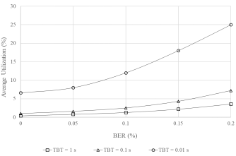 The BER vs. AU dependences for different values of the attacker's TBT are shown in Figure 4. The analysis revealed the following trends.