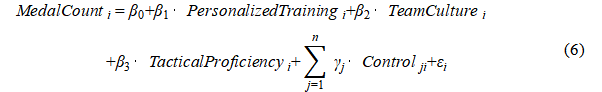 Multiple linear regression is employed to analyze the impact of event quantity, event type, and host country strategies on medal distribution.This approach provides a clear and transparent way to reveal linear causal relationships. Its interpretability, maturity, and complementary role alongside other models make it an ideal tool for examining the influence of event settings and coaching strategies.