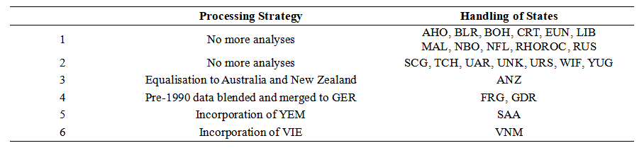 The data processing phase initiated with data integration and preprocessing operations to ensure dataset consistency and completeness. Subsequent steps included standardizing historical medal data, socioeconomic indicators, and athlete records to address entity disambiguation challenges. Particular attention was given to normalizing all relevant data affected by country name changes (e.g., the merger of FRG/GDR into GER), facilitating seamless integration across historical datasets. The comparison of the changes in the historical names of the participating units and the number of MEDALS won by each country are shown in Table 1 and Figure 4 respectively. The core objective of this step is to achieve entity alignment across all categories, eliminating data biases caused by naming discrepancies and thereby enhancing the accuracy of subsequent analyses.