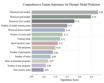 Figure 5. Comprehensive feature importance for olympic medal prediction