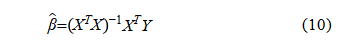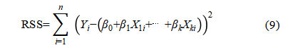 Ordinary Least Squares (OLS) was used to estimate the regression coefficients with an objective function of minimising the residual sum of squares (RSS):