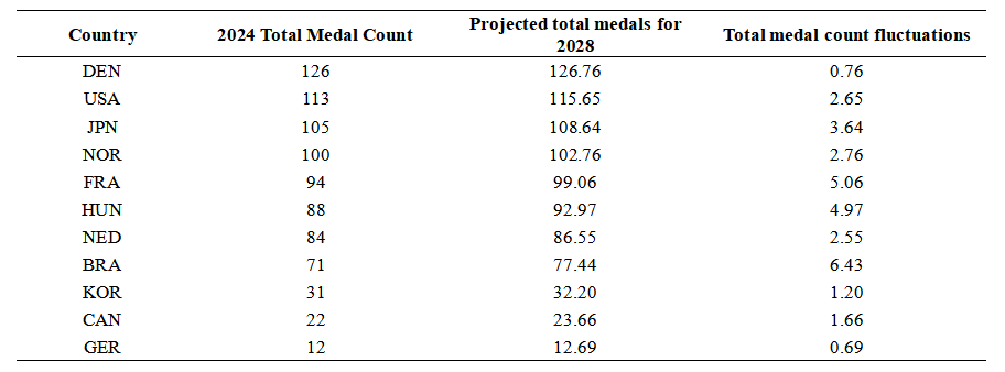 Table 5. The medal counts for the 2028 Olympics TOP 20: