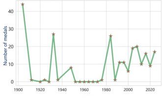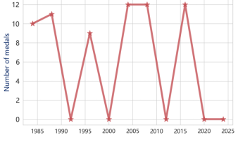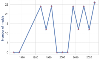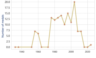 Figure 10. The changes in medals won by Chinese volleyball teams
