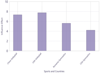 Subsequently, a subset of the data was selected to generate medal trend visualizations.The results of the influence of coaches on the winning situations of volleyball in China and the United States, as well as women's gymnastics in Romania and the United States, are shown in Figures 10-13.