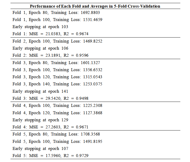 Table 8. Performance of each fold and averages in 5-fold cross-validation
