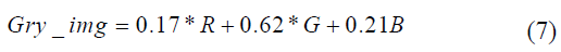 To streamline data processing and enhance computational efficiency, this study employs a grayscale conversion as a foundational preprocessing step. While simpler techniques often derive grayscale values by averaging the three RGB color channels, this approach can fail to account for human perception and varying light intensities. Consequently, we utilize the luminosity method to transform original RGB images into grayscale versions that preserve essential intensity information. To assign specific weights to each color channel based on their respective wavelengths, as detailed by [44]. This method ensures that the model captures a more accurate representation of the banknote’s structural features. This weighted conversion, defined in Eq. 7, optimizes model performance by reducing data dimensionality while maintaining high-fidelity contrast across different denominations.