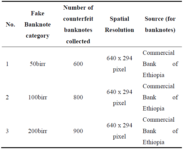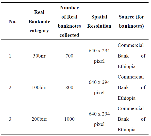 Table 3. Collected the real banknote dataset category.