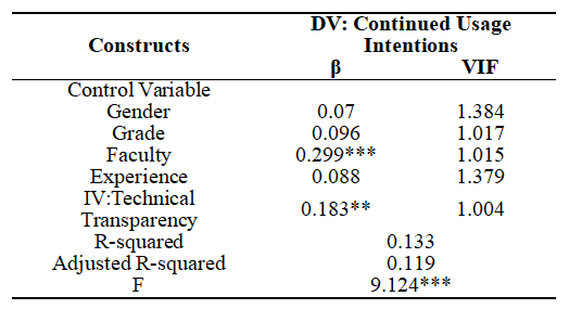 Table 5. Technical Transparency To Continued Usage Intentions Regression Analysis