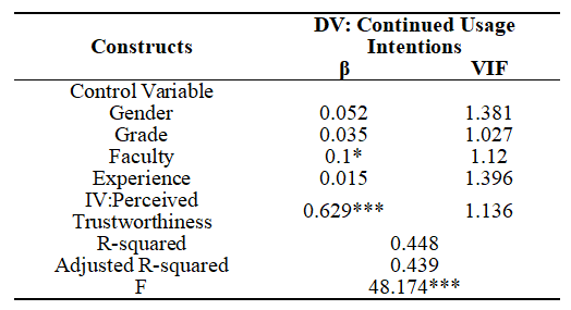 Table 6. Perceived Trustworthiness To Continued Usage Intentions Regression Analysis